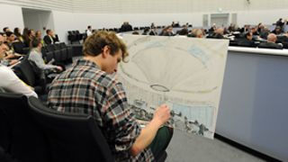 Mit Pinsel und Farbe hatte Wundersee seine Eindrücke der Plenarsitzung am Mittwoch, 26. Februar 2014, zu Papier gebracht. Insgesamt entstanden drei Bilder in unterschiedlichen Ausschnitten und Formaten. Wundersee begründete seine Kunstaktion damit, dass es eine künstlerische Herausforderung sei, eine Plenardebatte zu malen.