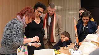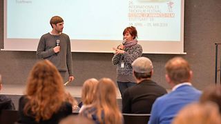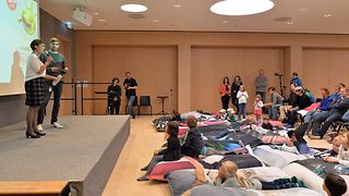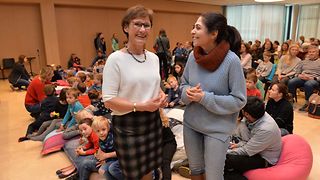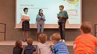 Los ging es um 11.00 Uhr im Bürger- und Medienzentrum: Vor allem Kinder und Jugendliche lernten beim „Markt der Möglichkeiten“ unterschiedliche Macharten für Trickfilme kennen oder konnten sich bei Mal- und Bastelaktionen austoben. Beliebt waren auch Fotos vor dem Greenscreen, über den man sich in ungewöhnliche Landschaften wie Wüsten oder das Weltall einbauen lassen konnte. Ein Höhepunkt des Tages war der Besuch von Shadi Adib, der Gewinnerin des Wettbewerbs „Trickfilm für Europa“. Gemeinsam mit Landtagsvizepräsidentin Sabine Kurtz sprach sie über ihren Europafilm „Ode“. Kurtz sagte, der Film sei ein toller Weg, um sich Europa zu nähern. „Es wird versucht, mit dem Mittel der Kunst für Europa zu begeistern“, so die Vizepräsidentin. Shadi Adib sagte, für sie sei der Film wie ein kleines Gedicht mit einer großen Bedeutung: „Wir alle sitzen im gleichen Boot.“ Am Nachmittag erinnerte das Bürgerzentrum dann an einen Kinosaal, denn der Film „Shaun das Schaf“ zog zahlreiche Gäste aller Altersgruppen an.