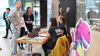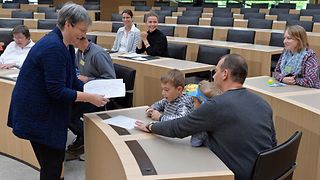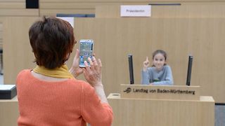 Für alle Gäste, die mehr über das Parlament erfahren wollten, boten Mitarbeiterinnen und Mitarbeiter der Landtagsverwaltung Führungen in den Plenarsaal, dem Herzstück des Parlamentsgebäudes, an. Dabei erfuhren die Gäste allerlei Wissenswertes über das Parlamentsgebäude und die Arbeit der Abgeordneten und Fraktionen. Und viele Besucher nutzen die Gelegenheit, um sich einmal auf den Platz der Landtagspräsidentin oder des Ministerpräsidenten zu setzen und Erinnerungsfotos zu machen.