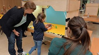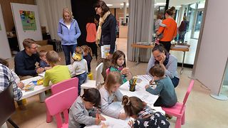 Animationsfilme, Bastelworkshops und Führungen in den Plenarsaal: Der Landtag mit seinem Bürger- und Medienzentrum hat am Sonntag, 5. Mai 2019, wieder seine Pforten für die Öffentlichkeit geöffnet. Knapp 1.000 kleine und große Gäste nutzen die Gelegenheit, um einmal im Landesparlament vorbeizuschauen. Die Sonntagsöffnung war dieses Mal besonders: Denn der Landtag beteiligte sich mit einem abwechslungsreichen Programm am Internationalen Trickfilmfestival und bot neben Führungen in den Plenarsaal auch spannende Einblicke in die Welt der Animationsfilme an.