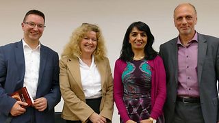 Landtagspräsidentin Muhterem Aras diskutiert mit Dr. Michael Blume (li.), Beauftragter der Landesregierung gegen Antisemitismus, und Prof. Barbara Traub, Vorstandsvorsitzende der Israelitischen Religionsgemeinschaft Württemberg am Dienstag, 27. November 2018, im Haus der Katholischen Kirche über Antisemitismus und Rassismus in Baden-Württemberg. Antisemitismus - nur ein Phänomen von gestern? Keineswegs! Das zeigt die Autoritarismus-Studie der Universität Leipzig. "Dieser Gefahr müssen wir mit aller Kraft entgegentreten. Antisemitismus und Rassismus haben in unserem Land keinen Platz, egal von welcher Seite sie kommen", so die Landtagspräsidentin. Moderiert wurde der Abend von Dr. Knut Krohn (Stuttgarter Zeitung).