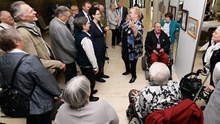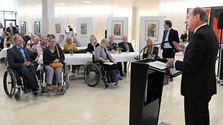 „Weltweit ist das hochansteckende Polio-Virus zwar noch nicht ausgerottet, aber die Zahl ist seit 1988 um über 99 Prozent zurückgegangen. Die Kinderlähmung wird bei uns deshalb nicht mehr als Gefahr wahrgenommen und ist auch nicht mehr gegenwärtig“, bemerkt Landtagsvizepräsident Wilfried Klenk in seiner Begrüßungsrede zur Ausstellungseröffnung „Polio kreativ“ anlässlich des 15-jährigen Bestehens des Landesverbandes Baden-Württemberg im Bundesverband Poliomyelitis e. V. am Mittwoch, 5. April 2017. „Das ist in doppelter Hinsicht ein großer Fehler, da das Virus wieder eingeschleppt werden könnte und weil wir von der Kinderlähmung Betroffene nicht aus dem Blickfeld verlieren dürfen“, legt Klenk dar. Das sogenannte Post-Polio-Syndrom tritt oft nach Jahrzehnten auf und ist unter anderem mit zunehmender Muskelschwäche verbunden. Hilfe und Unterstützung finden die Betroffenen und ihre Angehörigen beim Landesverband Baden-Württemberg im Bundesverband Poliomyelitis e. V. Die Bilder der Ausstellung im Haus des Landtags stammen von betroffenen Künstlerinnen und Künstlern aus der gesamten Bundesrepublik. „Ich möchte mich bei allen an der Ausstellung Beteiligten bedanken und den Künstlern für die Zukunft alles Gute wünschen“, so Klenk abschließend.