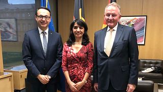 Der Gründer der German University in Cairo (GUC), Prof. Dr. Ashraf Mansour (im Bild li.) besucht Baden-Württemberg. Am Mittwoch, 5. Dezember 2018, trifft er Landtagspräsidentin Muhterem Aras zu einem Gespräch über die aktuelle Situation der GUC und Perspektiven für eine gute Entwicklung Afrikas. Bei dem Termin ebenfalls dabei ist Claus Schmiedel als Vertreter der School of International Business and Entrepreneurship (SIBE) der Steinbeis-Hochschule Berlin. SIBE strebt eine enge Kooperation mit der GUC an, nicht zuletzt um Studierende aus Afrika mit deutschen Unternehmen zusammenzubringen. Die GUC ist eine Gründung aus der Universität Ulm heraus und wurde vom damaligen Ministerpräsidenten Erwin Teufel stark unterstützt.