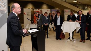 „Die Liga und ihre Mitglieder verkörpern und praktizieren ein Kernelement der Freiheit in unserer Demokratie: Sie verkörpern und praktizieren mustergültig Subsidiarität.“ Das betont Landtagsvizepräsident Wilfried Klenk (am Rednerpult) anlässlich der Begegnung mit der Liga der freien Wohlfahrtspflege in Baden-Württemberg e.V. am Donnerstagmittag, 9. Februar 2017, im Haus des Landtags. „Sie verwirklichen den Sozialstaat, den das Grundgesetz will und den wir alle haben wollen: den Sozialstaat der Vielfalt und des Ausgleichs, der menschlichen Wärme und des Zusammenwirkens von Profis und Ehrenamtlichen“, führt Klenk weiter aus. Den Mitgliedsverbänden der Liga gelänge es, Wirtschaftlichkeit mit ihrem angestammten, auf den Menschen ausgerichteten Selbstverständnis zu verbinden. Der Empfang böte eine gute Gelegenheit, um bei der Lösung der Zukunftsfragen voranzukommen. „Es eröffnet sich die Chance, den wechselseitigen Austausch zu pflegen“, so der Landtagsvizepräsident.