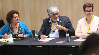 Den Jugendlandtag organisiert der Landtag gemeinsam mit dem Landesjugendring (LJR), der Landeszentrale für politische Bildung und dem Ring politscher Jugend. Rainer Baur, Vorsitzender des LJR, bedankt sich für die Begrüßung. „Ich bin sehr gespannt, was – angelehnt an Frau Aras‘ Worte – an Unmöglichem verlangt und an Realistischem erklärt wird“, sagt er.