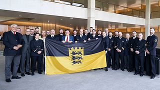 Die Crew ECHO der Fregatte Baden-Württemberg F222 bereist vom 18. bis 22. November 2024 im Rahmen eines Patenlandsbesuchs mit 24 Soldaten und einer Soldatin das Land Baden-Württemberg. Eine Station dieser Reise ist am Freitag, 22. November auch der Landtag. Nach dem Eintreffen werden die Besatzungsmitglieder von Landtagsvizepräsident Dr. Wolfgang Reinhart begrüßt.