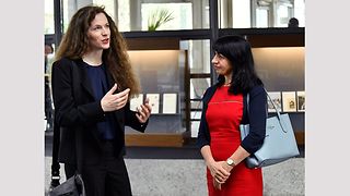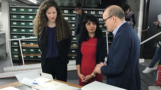 Landtagspräsidentin Muhterem Aras besucht am 4. November 2019 das Deutsche Literaturarchiv in Marbach mit konkreten Fragestellungen: Wie ist das Gedächtnis unseres Landes beschaffen? Zeigen die Schätze des Deutschen Literaturarchivs in Marbach die ganze Vielfalt des Landes? Sind Frauen, sind Ethnien sichtbar? Wie kann über Literatur Demokratiebildung gelingen? Wie sieht das Literaturarchiv der Zukunft aus? Direktorin Professorin Dr. Sandra Richter führt die Präsidentin durch die Bestände. „Es gab schon immer eine Austauschbewegung in Deutschland als Mittelland“, sagt Richter. Insofern sei Vielfalt sehr sichtbar. So seien aktuell der deutschsprachige Schweizer Autor Christian Kracht aufgenommen worden. Literaturzeugnisse jüdischer Autoren wie Franz Kafka seien häufig nach den 30er Jahren in Israel eingelagert. Richter erklärt, dass derzeit in der Bibliothek eine Sammlung mit Netzliteratur sowie Arbeiten junger Autoren aufgebaut werde, die in 20 Jahren auf geschichtliche Relevanz geprüft und ins Archiv übernommen würden.