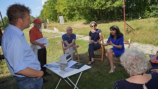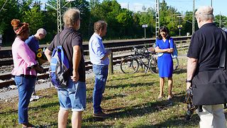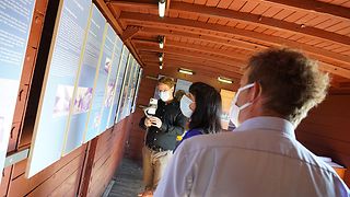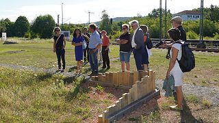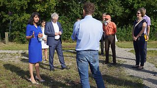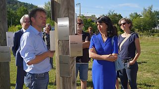 Begrüßt wird die Delegation von Folker Förtsch und weiteren Mitgliedern der Initiative KZ-Genkstätte Hessental e.V. Regelmäßig werden öffentliche Führungen und Informationsveranstaltungen angeboten. Um diese durchzuführen, müssen die Ehrenamtlichen meist Urlaub nehmen. „Das beschäftigt mich schon, dass Engagierte ihren Urlaub einbringen, um Gedenkstättenarbeit zu leisten“, so Landtagspräsidentin Muhterem Aras.