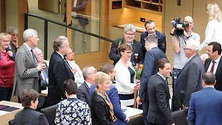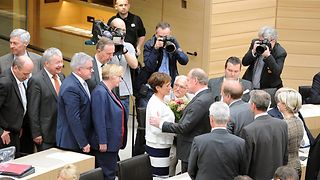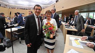 Sabine Kurtz ist die neue stellvertretende Landtagspräsidentin. Sie wurde am heutigen Mittwochvormittag, 25. April 2018, im zweiten Wahlgang mit den Stimmen von 71 Parlamentariern in ihr neues Amt gewählt. "Ich freue mich auf eine konstruktive Zusammenarbeit", so Landtagspräsidentin Muhterem Aras, die Kurtz mit einem Blumenstrauß gratulierte. "Was lange währt, wird endlich gut", meinte die Vizepräsidentin hinsichtlich der zwei Wahlgänge, die benötigt worden sind.