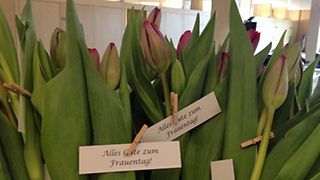 Am Internationalen Frauentag gibt es Blumen für die Damen von der Landtagspräsidentin