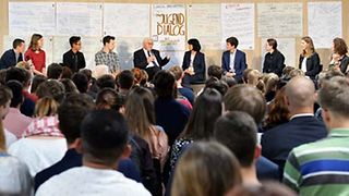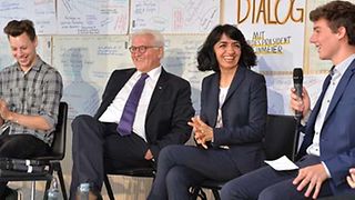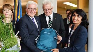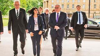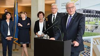 Bundespräsident Frank-Walter Steinmeier kommt am Montag, 3. Juli 2017, mit seiner Frau Elke Büdenbender zu seinem Antrittsbesuch in den Landtag von Baden-Württemberg. Im Mittelpunkt: Ein Gespräch mit etwa 200 jungen Erwachsenen zu Themen wie Demokratie oder Europa. Steinmeier ist überrascht von der Begeisterung für Politik. Nach einem Gespräch mit den Fraktionsvorsitzenden Andreas Schwarz, Dr. Wolfgang Reinhart, Dr. Jörg Meuthen, Andreas Stoch und Dr. Hans-Ulrich Rülke sprechen Landtagspräsidentin Muhterem Aras, Ministerpräsident Winfried Kretschmann und Bundespräsident Frank-Walter Steinmeier kurze Grußworte. Danach trägt sich der Bundespräsident ins Gästebuch des Landtags von Baden-Württemberg ein.