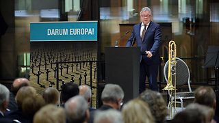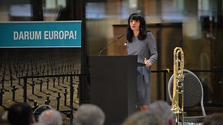 In seinem Festvortrag spürte Emeritus Professsor Gerd Krumeich der Frage nach dem Trauma der Niederlage von 1918 nach. In Deutschland sei das gemeinsame Totengedenken unmöglich gewesen durch eine innenpolitische Zerrissenheit zwischen links und rechts. Anders als in Frankreich habe sich die zerrissene Gesellschaft nicht versöhnen können über den Gräbern, was für die Bearbeitung der Traumas verheerende Wirkung gehabt habe. Die Nationalsozialisten hätten diese Leerstelle ausgefüllt und das "verkniffene Schweigen" über den Krieg aufgebrochen durch eine neue Sinngebung des Krieges.