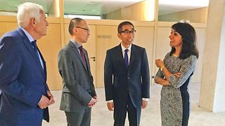 Der Vorsitzende des Finanzausschusses, Rainer Stickelberger (SPD), empfängt am 14. September 2018, im Landtag von Baden-Württemberg eine Delegation der chinesischen Partnerprovinz Jiangtsu. Im Parlament trifft die hochrangige Besuchergruppe mit dem Gouverneur von Jiangsu, Seiner Exzellenz Wu Zhenglong, an der Spitze auf Landtagspräsidentin Muhterem Aras zu einem kleinen Meinungsaustausch.