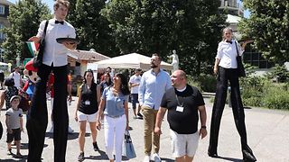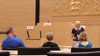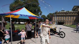 Die Sonne scheint heiß vom Himmel - und rund um den Schlossplatz und den Eckensee steigt das 17. Kinder- und Jugendfestival. Mittendrin der Landtag von Baden-Württemberg. "Der Landtag ist dieses Jahr zum ersten Mal dabei, darauf bin ich als Landtagspräsidentin wirklich stolz", so Muhterem Aras bei der Eröffnung auf dem Schlossplatz. Sie selbst habe aus ihrer Zeit als Gemeinderätin sehr gute Erinnerungen an das Kinder- und Jugendfestival. Sie dankte den Veranstaltern für die Chance mitzumachen. "Unser Landesparlament ist kein Museum und keine heilige Halle. Erobern Sie sich Ihren Landtag", fordert die Präsidentin die kleinen und großen Besucherinnen und Besucher auf.