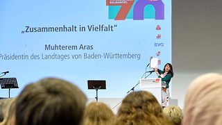 „Mit dem DGB feiern wir nicht nur die zahlreichen Errungenschaften für Arbeitnehmerinnen und Arbeitnehmer. Wir feiern Errungenschaften für unsere gesamte Gesellschaft“, sagt Landtagspräsidentin Muhterem Aras in ihrer Rede zum 70-jährigen Bestehen des DGB Baden-Württemberg am Montag, 14. Oktober 2019. Sein Jubiläum nimmt der DGB Baden-Württemberg zum Anlass, an die gewerkschaftlichen Errungenschaften der vergangenen 70 Jahre zu erinnern und die gegenwärtigen Herausforderungen zu benennen. „Je ungerechter sich Wohlstand in Deutschland verteilt, desto stärker gefährdet das den gesellschaftlichen Zusammenhalt“, so die Landtagspräsidentin.
