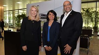 „Die Verteidigung unserer Grundwerte ist auch im Zusammenhang mit der Integration einer großen Zahl von Neuankömmlingen wichtig. Wir können die Werte unseres Grundgesetzes nur dann glaubhaft vermitteln, wir können andere nur dann dafür begeistern, wenn wir Rassismus und Diskriminierung deutlich zurückweisen - wo immer und in welcher Form sie auch auftreten“, betont Landtagspräsidentin Muhterem Aras (Mitte) in ihrem Grußwort anlässlich des Empfangs zum baden-württembergisch-israelischen Freundschaftsjahr im Landtag von Baden-Württemberg am Mittwoch, 5. Juli 2017. Gerade hierzu sei der Austausch zwischen Israel und Deutschland wichtig und aufschlussreich. Im Zuge des feierlichen Empfangs wird die neue Repräsentantin für Israel in Baden-Württemberg, Maren Steege (li.), offiziell von Generalkonsul Dr. Dan Shaham (re.) vorgestellt.