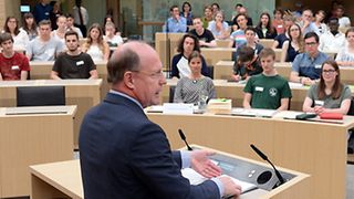 „Helfen macht glücklich.“ Mit diesen Worten begrüßt Landtagsvizepräsident Wilfried Klenk rund 145 FÖJler, die zum Dank für ihr Engagement am Montag, 29. Mai 2017, auf Einladung des Umweltministeriums einen Tag im Haus des Landtags in Stuttgart verbringen. Das Freiwillige Ökologische Jahr nehme nicht nur eine besondere Rolle bei den Freiwilligendiensten ein, sondern sei ferner auch äußert profitabel für die Jugendlichen, betont Klenk. So würden die jungen Erwachsenen Erfahrungen machen, die ihnen ihr ganzes Leben blieben. Außerdem würden sie „fast schon spielerisch wichtige Schlüsselkompetenzen, die am Arbeitsmarkt sehr gefragt sind, erwerben“, so der Landtagsvizepräsident. Als Beispiele nennt er Kommunikations-, Reflexions- und Problemlösungsfähigkeit sowie Flexibilität. Die Jugendlichen können im Anschluss in verschiedenen Workshops mit Experten und Abgeordneten diskutieren und Ideen entwickeln. Aus den Händen von Staatssekretär Dr. Andre Baumann erhalten sie FÖJ-Teilnehmer-Zertifikate.