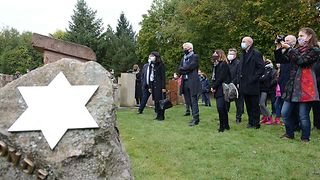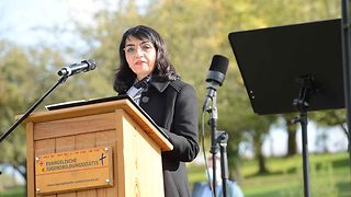 Landtagspräsidentin Muhterem Aras nimmt am Sonntag, 18.Oktober 2020, an der Veranstaltung zum Gedenken an die vor 80 Jahren ins französische Internierungslager Gurs deportierten Juden teil. „Für alle Demokratinnen und Demokraten ist die Erinnerung wichtig und notwendig“, sagt Aras am Mahnmal in Neckarzimmern. Gedenken und wie wir es lebten sei auch ein Gradmesser für das Werteverständnis unserer Gesellschaft.