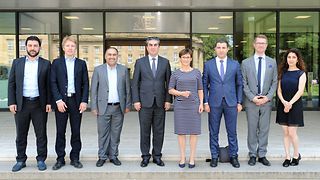 Der Gouverneur der Provinz Dohuk im Nordirak, Farhad Ameen Atrushi (4. v. l.) kommt im Rahmen einer Reise nach Baden-Württemberg mit einer Delegation zu einem Besuch in den Landtag. Die Gäste werden am Donnerstag, 27. Juni 2019, von Landtagsvizepräsidentin Sabine Kurtz (5. v. l.) zu einem Gespräch empfangen. Bei dieser Reise handelt es sich um einen Gegenbesuch auf eine Delegationsreise aus Baden-Württemberg, die vor zwei Monaten stattgefunden hat. Die Provinz Dohuk ist eines von vier Gouvernements der autonomen Provinz Kurdistan-Irak.