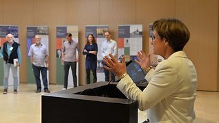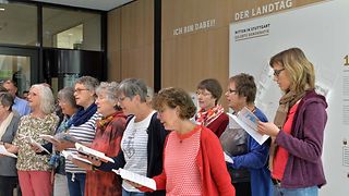 Begrüßt werden die Gäste von Landtagsvizepräsidentin Sabine Kurtz. Sie mahnt in ihrem Grußwort, Demokratie und Rechtsstaatlichkeit nicht als Selbstverständlichkeit zu betrachten. „Dieses Haus und die Demokratie: Das ist nicht einfach gesetzt. Das ist nicht für immer gegeben. Das alles kann durch schwere Krisen, durch einen verrohten Diskurs, durch Extremisierung und Polarisierung ins Wanken geraten, aber auch durch Vernachlässigung und Missachtung“, so Kurtz.