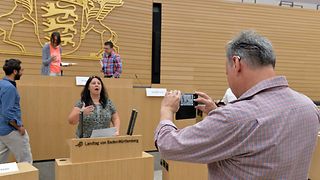 Mehrere Hundert Gäste kommen am Samstag, 21. September 2019, zu einer Sonderöffnung in den Landtag von Baden-Württemberg. Der Tag steht unter dem Motto „Erinnern für Morgen“. Im Mittelpunkt steht eine Wanderausstellung über den badischen Politiker und Widerstandskämpfer Ludwig Marum und andere Abgeordnete, die politisch verfolgt wurden. Angeboten werden Führungen durch die Ausstellung sowie ins Herzstück der Demokratie, den Plenarsaal, wo die Besucherinnen und Besucher den Ausführungen der Guides lauschen und Erinnerungsfotos machen.