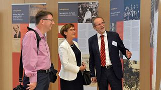 Im Bürger- und Medienzentrum wird eine aus 31 Elementen bestehende Wanderausstellung der Gedenkstätte Deutscher Widerstand (Berlin), des Landesarchivs Baden-Württemberg sowie des Forums Ludwig Marum e.V. gezeigt, die erstmals in Baden-Württemberg zu sehen ist. Sie ist dem badischen SPD-Politiker Ludwig Marum (1882-1934) gewidmet, der gemeinsam mit anderen die Demokratie im Land mitbegründete und verteidigte. „Menschen wie Ludwig Marum machen uns vor, wie man mit Herzblut für Demokratie einstehen kann – über Partei- und Konfessionsgrenzen hinweg“, sagt Vizepräsidentin Kurtz. Und der Präsident des Landesarchivs Baden-Württemberg, Prof. Dr. Gerald Maier, ergänzt: „Mit den im Landesarchiv gelagerten Unterlagen können wir Ludwig Marums Überzeugungen und seinen Kampf für die gefährdete Weimarer Republik dokumentieren.“