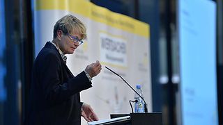 "Gehen Sie nie außer Haus ohne Grundgesetz", so der Rat von Prof. Dr. Susanne Baer, Richterin des Bundesverfassungsgerichts, die den Impulsvortrag hält. Sie stellt u. a. heraus: Die Versammlung als Recht gehört allen Menschen, das Versammlungsrecht hat eine fundamentale Funktion und das Versammlungsrecht darf unbequem sein.