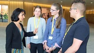 Corinna Oeß, Julia Piazolo und Rachid Schiller besuchen am Mittwoch, 19. Juli 2017, den Landtag von Baden-Württemberg. Alle drei haben am Online-Quiz des Landtags teilgenommen und jeweils einen Monatssieg errungen. Landtagspräsidentin Muhterem Aras hat die erfolgreichen Jugendlichen eingeladen, sich vor Ort im Haus des Landtags selbst ein Bild von der parlamentarischen Arbeit zu machen. Zunächst verfolgen die drei eine aktuelle Debatte von der Besuchertribüne aus. Danach treffen sie die Landtagspräsidentin zu einem Gespräch. Themen sind schnell gefunden: so wird über die Vorzüge des beruflichen Gymnasiums ebenso diskutiert wie über die Rolle der Präsidentin während einer Plenarsitzung. „Ich freue mich über lebendige, kontrovers geführte Debatten. Aber die Abgeordneten sollen fair und respektvoll miteinander umgehen“, betont Muhterem Aras. Begeistert sind die Jugendlichen auch vom Bürger- und Medienzentrum und der dortigen Ausstellung.