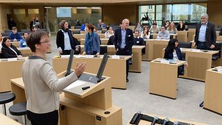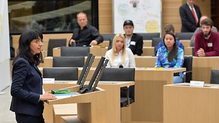 Nach dem Jugendlandtag vom 7. und 8. November 2017 nehmen 30 Jugendliche erneut die Möglichkeit wahr, sich mit Abgeordneten des Landtags über politische Themen bzw. das damals erarbeitete Kommuniqué, auszutauschen. Themen, die sie bewegen. „Statt passiv Geschichten zu konsumieren, habt ihr aktiv eure eigenen Geschichten geschaffen“, sagt Landtagspräsidentin Muhterem Aras bei „Jugend hakt nach“ zu den interessierten Jugendlichen. Drei Themen stehen bei der Veranstaltung des Landtags und des Landesjugendrings am 21. November im Plenarsaal im Mittelpunkt: Die Frage, ob Jugendliche keine Zeit mehr für ein Ehrenamt haben, die Jugendbeteiligung und das Wahlalter im europäischen und bundesweiten Vergleich, sowie das Thema Integration und offene Gesellschaft. Zu diesen Themen diskutieren die Jugendlichen mit Abgeordneten und mit geladenen Experten. Landtagspräsidentin Aras bedankt sich bei den Jugendlichen für ihr Engagement. „Wir brauchen eure Kritik, eure Wünsche und eure Ideen für das Baden-Württemberg von morgen, an dem wir heute schon gemeinsam arbeiten“, erklärt Aras.
