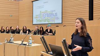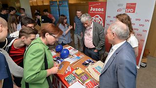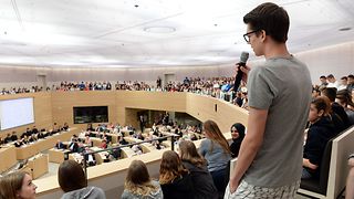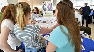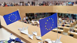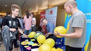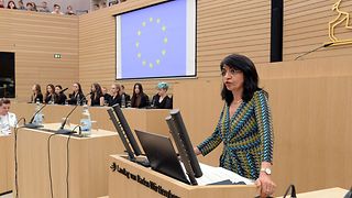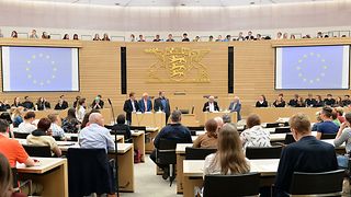 Rund 400 Schülerinnen und Schüler diskutieren am Montag, 7. Mai 2018, im Landtag gemeinsam mit Abgeordneten über die Zukunft der Europäischen Union. „Mit dem Motto der heutigen Veranstaltung möchten wir darauf aufmerksam machen, dass wir in Europa und in den Staaten der Europäischen Union in einem Boot sitzen“, sagt Landtagspräsidentin Muhterem Aras zur Begrüßung bei der Jugendveranstaltung unter dem Motto „MEIN EUROPA, DEIN EUROPA – MISCH DICH EIN!“ im Plenarsaal. Es sei das Europa jedes Einzelnen von uns und unser gemeinsames Europa. „Es liegt an Ihnen, der jungen Generation, das Europa der Zukunft zu gestalten“, so Aras weiter.