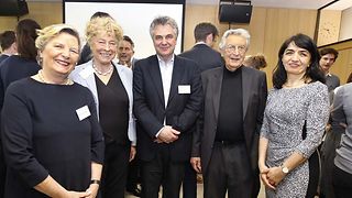 Gabriele Müller-Trimbusch, Prof. Dr. Gesine Schwan, Prof. Dr. Ludwig Theodor Heuss, Gerhart R. Baum und Landtagspräsidentin Muhterem Aras am Rande des Kolloquiums für die Medaillenträger 2019
