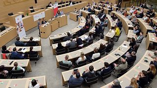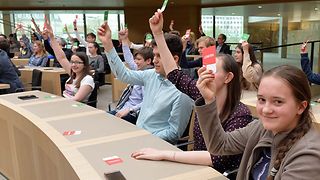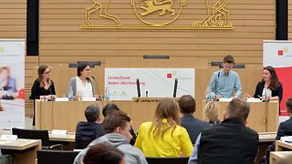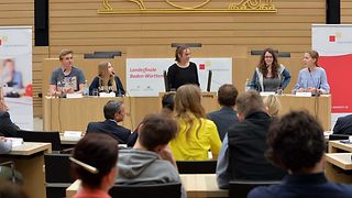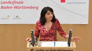 „Am besten gefällt mir an Jugend debattiert, dass es das Zuhören fordert und belohnt. Hier ist nur die- und derjenige erfolgreich, der sich auf Debatten und sein Gegenüber auch wirklich einlässt“, betont Landtagspräsidentin Muhterem Aras beim Landesfinale von "Jugend debattiert" am Freitag, 13. April 2018, im Plenarsaal im Haus des Landtags. Aras, die Schirmherrin des Wettbewerbs auf Landesebene, hebt hervor: „Ihr habt gelernt, euch auf euer Gegenüber einzulassen“. Das sei das wichtigste überhaupt. Egal, ob man in der Politik streite, in der Schule, in der Familie oder sonst wo. Dass man in alle diese Diskussionen mit der Haltung reingehe: „Ja, ich bin zwar überzeugt von meinen Argumenten, aber die anderen können auch recht haben.“ Diese Haltung und die Diskussionskultur seien für unsere Gesellschaft insgesamt sehr wichtig. „Denn wenn jeder nur noch seine Wahrheit gelten lässt, sich Fakten solange zurechtbiegt, bis sie ins eigene Weltbild passen und Widerspruch nicht aushält, dann haben wir alle ein großes Problem. Dann ist unsere Gesellschaft keine Gemeinschaft mehr, sondern zerfällt in Grüppchen, die sich einander misstrauen“, so die Landtagspräsidentin.