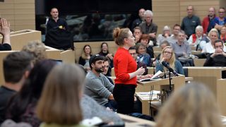 Der Landtag von Baden-Württemberg avanciert bei der Stuttgartnacht am Samstag, 15. Oktober 2016, zu einer gefragten Location: Hunderte interessierter Gäste besuchen das Hohe Haus, um einfach nur gute Musik zu hören, zu tanzen oder beim Poetry Slam und Kabarett zuzuschauen. Das abwechslungsreiche Programm – zusammengestellt von den Fraktionen – kommt allseits an.