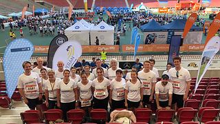 Sportliche Leistung des Landtags von Baden-Württemberg: Erstmals nehmen Mitarbeiterinnen und Mitarbeiter des Landesparlaments am Donnerstag, 12. Juli 2018, beim Firmenlauf „B2Run“ in Stuttgart teil. Rund 20 Kolleginnen und Kollegen gehen mit Landtagsdirektor Berthold Frieß auf der 5,6 Kilometer langen Strecke in Bad Cannstatt an den Start. Los geht der Lauf am Cannstatter Wasen, er führt über das Festgelände, einmal um die Mercedes-Benz-Arena und endet im Stadion, wo sonst die VfB-Profis um Siege kämpfen. Schnellster Läufer des Landtagsteams ist Sinisa Susak, der deutlich vor allen anderen Teammitgliedern die Ziellinie überquert. Bei der After-Run-Party lässt das Team den sportlichen Abend im Stadion gemeinsam mit Tausenden anderen Läuferinnen und Läufern ausklingen. Teamkapitänin Daniela Hamm ist sich jetzt schon sicher: „Nächstes Jahr wird der Landtag bestimmt wieder mitlaufen.“ An dem Lauf nehmen insgesamt 7.700 Läuferinnen und Läufer von 450 Unternehmen teil.