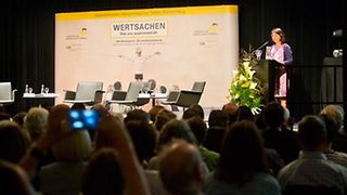 Die „Wertsachen“-Gesprächsreihe des Landtags gastierte am 18. Oktober 2017 an historischem Ort: Im Salmen in Offenburg fand am 12. September 1847, am Vorabend der Revolution, die Versammlung der "Entschiedenen Freunde der Verfassung" statt. Am Ende standen 13 Forderungen, darunter die „Preßfreiheit“. An diesen Ort lud Landtagspräsidentin Muhterem Aras (Grüne) zu einem Abend über die Werte und den Zusammenhalt in unserer Gesellschaft ein. Rund 260 Interessierte jeglicher Altersgruppe kamen, darunter Oberbürgermeisterin Magret Schreiner und der Bildungs-Staatssekretär und Wahlkreisabgeordnete Volker Schebesta (CDU).