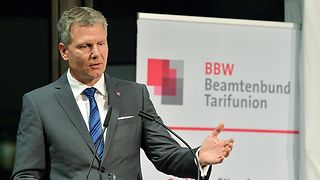 Bereits zum vierten Mal sind die Personalrätinnen und Personalräte des Beamtenbundes Baden-Württemberg (BBW) zu Gast im Landesparlament. Begrüßt werden sie bei dem Empfang am Donnerstagabend, 11. November 2021, im Haus des Landtags von Landtagsvizepräsident Dr. Wolfgang Reinhart. Im Mittelpunkt der Veranstaltung steht eine Podiumsdiskussion, bei der der Landesvorsitzende des Beamtenbundes, Kai Rosenberger, mit den Abgeordneten Oliver Hildenbrand (Grüne), Tobias Wald (CDU), Nicolas Fink (SPD), Nico Weinmann (FDP/DVP) und Dr. Rainer Balzer (AfD) diskutiert. Die Personalrätinnen und Personalräte nutzen die Gelegenheit auch zum persönlichen Austausch mit den Parlamentariern.