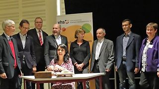 Landtagspräsidentin Muhterem Aras zu Gast in Eberbach-Neckargemünd bei der Volkshochschule. Für ihren Vortrag vor gut 200 Interessierten wählte die protokollarisch zweite Repräsentantin des Landes das Thema „Heimat in Vielfalt“. Nicht nur die Landschaften, Mentalitäten und Städte Baden-Württembergs zeigten große Vielfalt, auch die Gesellschaft, die Wirtschaft, die Wissenschaft oder die Ebene der Religion sei von Vielfalt geprägt, so die These. Diese Vielfalt ist ein roter Faden unserer Geschichte. „Wir verdanken dieser Vielfalt, dass Weltmarktführer in Baden-Württemberg heute ihren Sitz sowohl in Stuttgart als auch in Schwarzwaldtälern oder im Odenwald haben. Diese Vielfalt ist Grund für unsere Innovationskraft. Sie ist Voraussetzung unserer Stärke. Ihr verdanken wir, dass das Land so viele Zentren hat.“ Ein solches Verständnis von Vielfalt helfe insgesamt, Veränderungen mit positiver Grundhaltung zu begegnen, so die Landtagspräsidentin. „Sich darauf zu besinnen, halte ich für einen entscheidenden Beitrag zur derzeitigen gesellschaftlichen Debatte.“