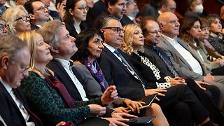 Vor rund 450 Gästen, darunter Abgeordnete der Fraktionen, Vertreterinnen und Vertreter von Regierung und Opfergruppen sowie Repräsentanten der Region und zahlreiche Schülerinnen und Schüler, betont Aras mit Blick auf aktuelle Ausschläge von Demokratiefeindlichkeit und Antisemitismus in Deutschland, aber auch mit Blick auf die Anschläge der Terrororganisation Hamas vom 7. Oktober: „Wir begreifen die Erinnerung auch als Mahnung für unsere heutige Zeit."