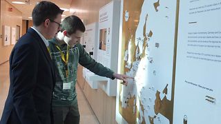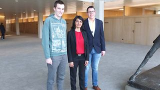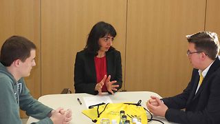 Felix Gasper aus Tettnang und Jonas Haaß aus Eberbach sind am Mittwoch, 24. Januar 2018, zu Gast im Landtag von Baden-Württemberg. Die beiden Schüler haben am Online-Landtagsquiz teilgenommen und sich jeweils Monatssiege erspielt. Nach einer kurzen Einführung in den Landtagsalltag dürfen die Jungs auf der Besuchertribüne Platz nehmen und von dort die Plenardebatte verfolgen. Sie hören, wie Politiker aus verschiedenen Parteien miteinander debattieren und ihre Standpunkte auch durch lautstarke Zwischenrufe untermauern. Anschließend treffen die Quizgewinner Landtagspräsidentin Muhterem Aras zu einem Gespräch. Themen sind schnell gefunden – die beiden politikinteressierten Jugendlichen bewerten die Koalitionsgespräche, eine mögliche GroKo und tauschen sich mit der Präsidentin über schulische Belange, das Engagement in Vereinen, Kirchen und Parteien aus. Beide sind nicht zum ersten Mal im Landtag: Felix hat bereits sein BOGY-Praktikum bei einem Abgeordneten absolviert und Jonas führte sein Engagement in der evangelischen Kirche bereits zwei Mal in den Landtag, anlässlich des Besuchs von Bundespräsident Frank-Walter Steinmeier und zum Jugendlandtag. Beide Jungs könnten sich vorstellen, in einigen Jahren vielleicht sogar selbst Abgeordnete im Landtag von Baden-Württemberg zu sein. „Es ist sehr wichtig, dass man sich engagiert. Ihr sollt mitmischen und natürlich bei den Kommunalwahlen 2019 wählen gehen“, so der Appell von Muhterem Aras. Den Abschluss des Besuchs bildet ein Rundgang durch das neue Bürger- und Medienzentrum, wo die Jugendlichen auch einen Blick in die interaktive Dauerausstellung werfen.
