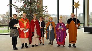 Sternsinger der Domkirche St. Eberhard in Stuttgart bringen am Montag, 7. Januar 2019, den Segen „Christus mansionem benedicat (Christus segne dieses Haus) in den Landtag von Baden-Württemberg, wo sie von Landtagsvizepräsidentin Sabine Kurtz empfangen werden. „Segen bringen, Segen sein. Wir gehören zusammen – in Peru und weltweit!“ heißt das Motto der Aktion Dreikönigssingen 2019, die besonders Kinder mit Behinderung in den Fokus nimmt. Die Sternsinger machen darauf aufmerksam, dass weltweit zirka 165 Millionen Kinder geistig oder körperlich beeinträchtigt sind. Viele wachsen in Armut auf. „Es ist wunderbar, dass es die Sternsinger gibt und dass Sie diese schöne Tradition pflegen“, freute sich Sabine Kurtz über den Besuch. „Ich finde es besonders bewundernswert, dass Sie sich für Kinder auf der Welt einsetzen, denen es nicht so gut geht wie den meisten Kindern hier bei uns in Baden-Württemberg“, so die Landtagsvizepräsidentin. Der Landtag beschäftige sich auch oft mit dem Thema Inklusion und versuche, viel auf den Weg zu bringen, um Menschen mit Behinderung zu unterstützen und ihnen Teilhabe an allen unseren Lebensbereichen zu ermöglichen. „Besonders in ärmeren Ländern ist Hilfe dringend notwendig“, betont Kurtz. Umso wichtiger sei es, darauf aufmerksam zu machen und durch Projekte und Kooperationen in den betroffenen Ländern zu helfen.