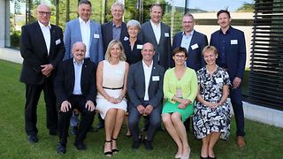 Die Präsidentinnen und Präsidenten der Internationalen Parlamentarischen Bodensee-Konferenz (IPBK) treffen sich am Freitag, 28. Juni 2019, in der Pädagogischen Hochschule Thurgau (PHTG) in Kreuzlingen zu einem Informationsblock mit anschließendem Austausch. Mit dabei ist Landtagsvizepräsidentin Sabine Kurtz (sitzend, 2. v. re.). Dabei referiert M.A. Christof Widmer, Amt für Mittel- und Hochschulen, über die grenzüberschreitende Hochschulstrategie des Kantons Thurgau. Rektorin Prof. Dr. Priska Sieber stellt die binationale Lehrerinnen- und Lehrerausbildung vor. Auf großes Interesse stößt das Referat "Ein Modell für Europa? Wie die IBH und ihre Hochschulen Innovationen für die Region entwickeln" von Prof. Dr. Markus Rhomberg, Geschäftsführer der Internationalen Bodensee-Hochschule IBH. Im Anschluss findet ein reger Austausch statt. Der Kanton Thurgau hat dieses Jahr den Vorsitz der IPBK.