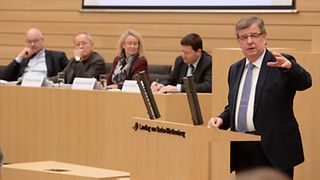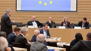 Nach der Begrüßung durch die Landtagspräsidentin hält der Kabinettchef des Präsidenten der Europäischen Kommission, Prof. Dr. Martin Selmayr, einen Impulsvortrag. Anschließend diskutieren Evelyne Gebhardt MdEP (Vizepräsidentin des Europäischen Parlaments und Vorsitzende der Europaunion Baden-Württemberg), Rolf-Dieter Krause (ehem. Leiter des ARD-Studios Brüssel), Thomas Schmid (ehem. Chefredakteur und Herausgeber der Welt-Gruppe) sowie Prof. Dr. Martin Selmayr. Moderiert wird die Diskussionsrunde von Willi Stächele (Vorsitzender des Ausschusses für Europa und Internationales).