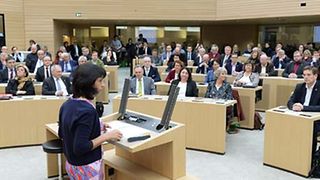 „Die europäische Ebene beeinflusst die Landespolitik in hohem Maße. Das Wechselspiel zwischen Regionen, Staaten und der EU wird immer wichtiger.“ Davon zeigt sich Landtagspräsidentin Muhterem Aras bei der Veranstaltung „Weißbuch zur Zukunft Europas“ am Mittwoch, 15. November 2017, im Haus des Landtags überzeugt. „Die Diskussion zur Zukunft der Europäischen Union kommt zur richtigen Zeit. Wir müssen sie sehr intensiv führen. Wir müssen sie ergebnisoffen führen und vor allem: wir müssen sie in die Hände der Bürgerinnen und Bürger legen“, betont Aras. Das von Kommissionspräsident Juncker vorgestellte Weißbuch der Zukunft biete dazu gute Voraussetzungen. Mit seiner Ergebnisoffenheit lege das Weißbuch die Grundlage, um die Bürgerinnen und Bürger zum Weiterdenken anzuregen und sie zu gleichberechtigten Teilnehmern der Debatte um die Zukunft Europas zu machen. „Wir brauchen diese Debatte in der Zivilgesellschaft, um zwei gegensätzliche Bewegungen wieder zusammenzubringen“, so die Landtagspräsidentin.