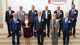 Landtagsvizepräsidentin Sabine Kurtz (vorne, 2.v.li.) nimmt am Freitag, 19. Juni 2020, an der Internationalen Parlamentarischen Bodenseekonferenz (IPBK) in Bregenz in Österreich teil. Die Präsidentinnen und Präsidenten der Länder und Regionen, die an den Bodensee grenzen, tauschen sich auf diesen Konferenzen regelmäßig über gemeinsame Themen aus. Gastgeber ist dieses Mal Harald Sonderegger, Präsident des Vorarlberger Landtags (vorne, Mitte). Im Mittelpunkt des Treffens steht die universitäre Bildung und die Öffnung der Grenzen. Die Parlamentarier sind sich einig, dass gerade nach der Grenzöffnung das Treffen der Präsidentinnen und Präsidenten Signalwirkung habe, um wieder ins Bewusstsein zu rufen, wie stark die Verbindungen innerhalb der Region sind und auch weiterhin sein werden.