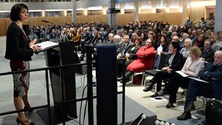 „Wir haben mit unserem Grundgesetz eine der besten Verfassungen der Welt. Hier sind unsere Werte verankert. Werte wie: Würde, Gleichberechtigung, Pluralität, Solidarität, Freiheit und streitbare Demokratie“, betont Landtagspräsidentin Muhterem Aras beim Auftakt der von ihr initiierten Gesprächsreihe „WERTSACHEN – Was uns zusammenhält“ am Dienstagabend, 24. Januar 2017, im Haus des Landtags. Sie wolle sich mit aller Kraft und Leidenschaft für den Erhalt unserer Grundwerte und den Zusammenhalt unserer Gesellschaft einsetzen, sagte Aras vor rund 600 Gästen.
