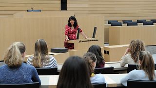 Auch in diesem Jahr beteiligt sich der Landtag am Girls‘ Day, dem bundesweiten Zukunftstag für Mädchen. „Schülerinnen und Schüler sollten nicht das machen, was ,alle‘ ihres Geschlechts machen, sondern das, was am besten zu ihrer oder seiner Persönlichkeit passt“, erklärt Landtagspräsidentin Muhterem Aras bei ihrer Begrüßung am Donnerstag, 28. März 2019. Sie erinnert die zahlreichen Schülerinnen (und die wenigen Schüler) an die vielen Einschränkungen für Frauen, die erst in den vergangenen Jahrzehnten aufgehoben wurden: angefangen mit dem Recht, wählen und sich wählen lassen zu dürfen, über die Möglichkeit, ein eigenes Konto zu eröffnen, oder arbeiten zu dürfen, ohne dass die Frau ihren Mann um Erlaubnis bitten musste. „Ohne Frauen in der Politik hätten wir diese Recht nicht!“ betont Aras und appelliert an die Mädchen, sich einzumischen und die Gesellschaft mitzugestalten.