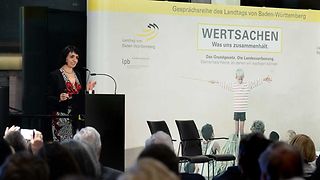 Landtagspräsidentin Muhterem Aras begrüßt die zahlreichen Gäste