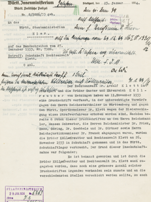 Schreiben der Württembergischen Politischen Polizei