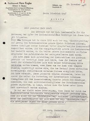 Schreiben des Konkursverwalters Hans Engler an Friedrich Graf