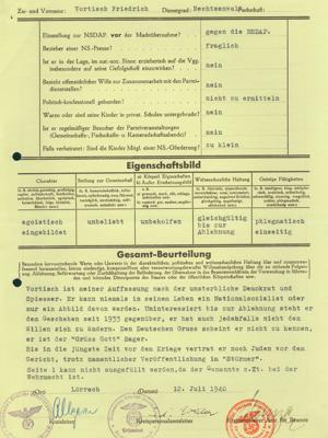 Am 12. Juli 1940 erstellte die NSDAP-Kreisleitung in Lörrach eine politische Beurteilung Vortischs, in der sie diesen als »unsterblichen Demokraten« und »'Grüss Gott' Sager« charakterisierte.